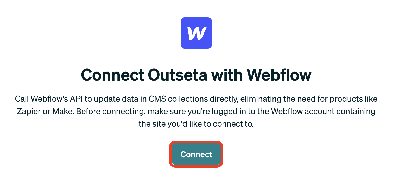 3. Select the Webflow site you want to connect to Outseta and click AUTHORIZE APP.